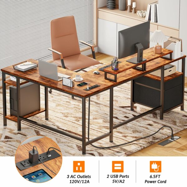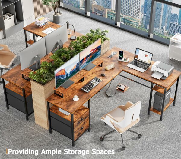 - Upgraded Fabric File Drawer: The l shaped desk with a fabric drawer and file cabinet, 2 tier storage shelves, allowing you hold letter/A4/ legal size files. Drawers made of high-quality non-woven fabric that is lightweight, breathable and prevent dust.