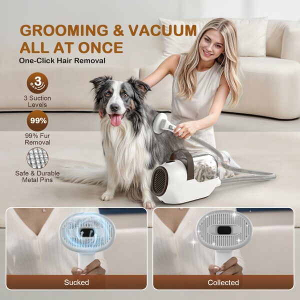 • 🐕Grooming & Vacuum All at Once: Our dog grooming kit with a vacuum function captures 99% of pet hair with 10,000 Pa suction power, while the upgraded grooming brush with safe metal pins removes loose hair and undercoat. The durable, rounded metal pins are gentle on sensitive skin, keeping your pet’s coat smooth and healthy with minimal effort. This pet vacuum grooming kit also ensures your home stays clean and tidy while offering a hassle-free grooming experience.