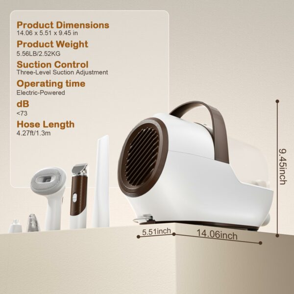 • 🐈Quiet & Stress-Free Grooming: Our pet grooming vacuum for dogs features a low-noise design to keep your pet calm and comfortable during grooming. With 3 adjustable suction levels, your dog will feel relaxed and not scared, even at the highest setting, where noise is below 73dB. This makes it the perfect dog hair trimmer for pets who are sensitive to loud sounds.